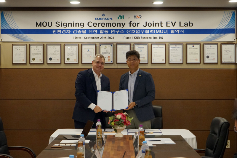 유압로봇 전문기업 케이엔알시스템이 지난 23일 에머슨 일렉트릭과 'KNR+NI EV Lab' 설립을 통한 '친환경 차량용 배터리 검증 테스트 사업 협업 양해각서(MOU)'를 체결했다고 24일 밝혔다.