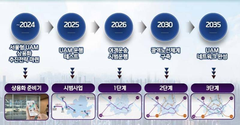 서울특별시는 2025년 도심항공모빌리티(UAM) 운행 테스트를 진행하고 2030년 노선 구축 및 상용화를 목표로 실증을 추진한다고 11일 밝혔다.