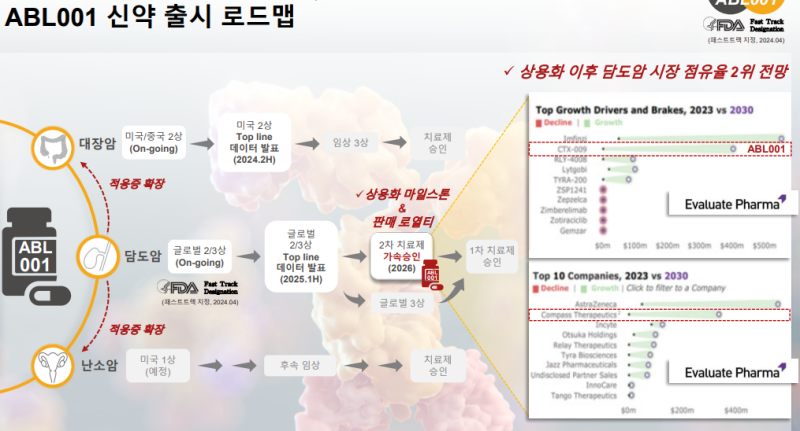 에이비엘, VEGFxDLL4 이중항체 ‘ABL001’ 담도암 2/3상 및 CLDN18.2x4-1BB 이중항체 ‘ABL111’ 위암 1b상 결과 도출 전망