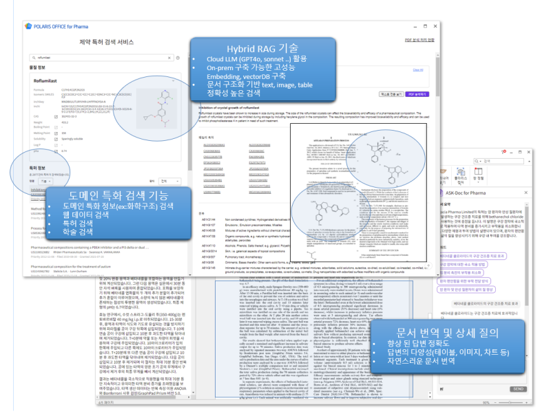 이번 개발은 지난해 11월 출시한 ‘폴라리스 오피스AI Business’에 검색증강생성(Relevant Answer Generation, RAG) 기술을 활용한 도메인에 특화된 AI 모델로, 제약 업계의 정보 접근과 분석을 한층 개선해 출시할 예정이다.
