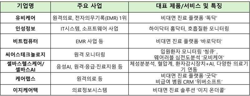 유비케어, 인성정보, 비트컴퓨터 등 비대면 진료 플랫폼 운영