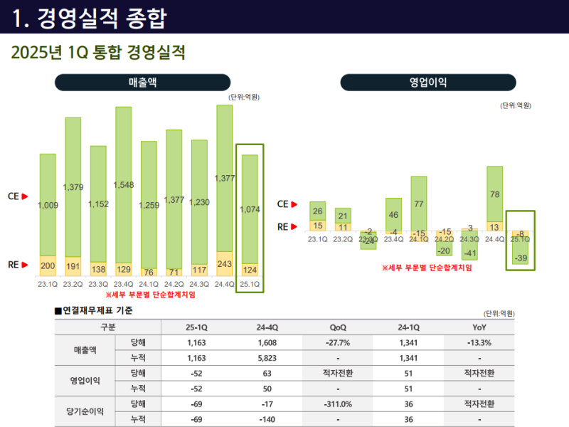 · 영업이익 : -52억 원 (전년 및 전분기 대비 적자 전환)
