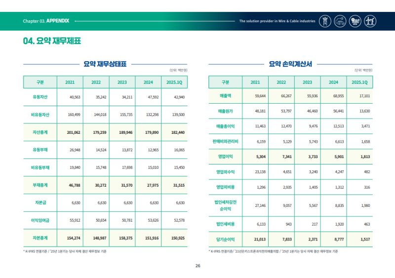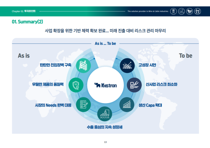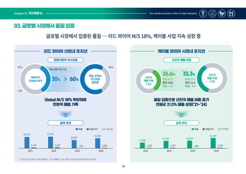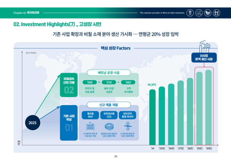 • 특히 케이블 와이어 부문은 품질 경쟁력을 기반으로 글로벌 주요 거래처와의 협력 관계를 지속 확대할 계획.