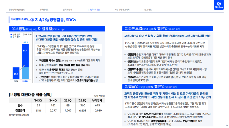 • 신한저축은행 대출을 신한은행으로 대환하여 고객의 신용등급을 개선