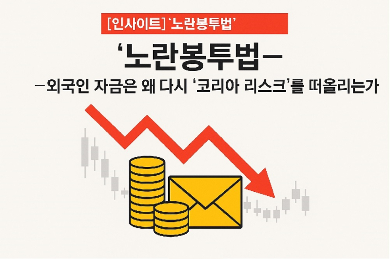 반면 8월 1일 하루 만에 8693억 원어치를 던지자마자 지수는 곧바로 출렁였다. 외국계 매니저들은 “숫자 하나보다 예측 불가한 정책 리스크가 더 무섭다”고 말한다. 그들이 요즘 입에 올리는 변수가 바로 ‘노란봉투법’이다.