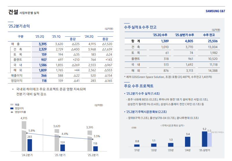 • 상반기 수주 실적: 4.8조 원 (일부 타깃 프로젝트 하반기로 이연)