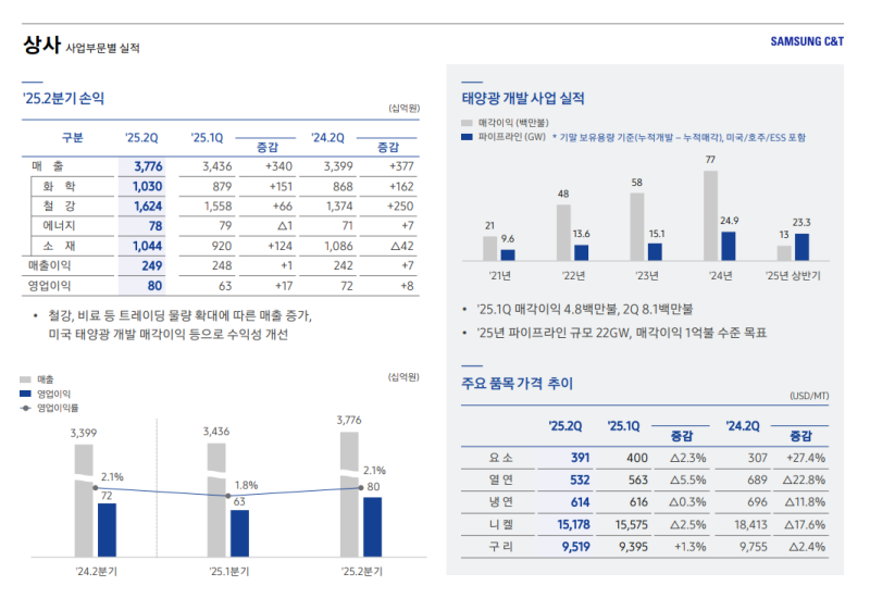 • 건설 매출은 둔화되었으나, 패션·레저·식음 부문은 계절적 요인으로 실적 개선