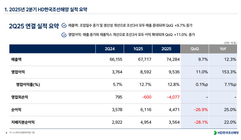 • 영업이익률 12.8% (QoQ +0.1%p, YoY +7.1%p)