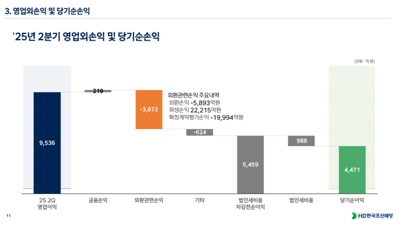 • 총 연결 기준 환 관련 손실 460억원 발생 : HD현대중공업 293억원, HD현대삼호중공업 25억원, HD현대미포조선 143억원