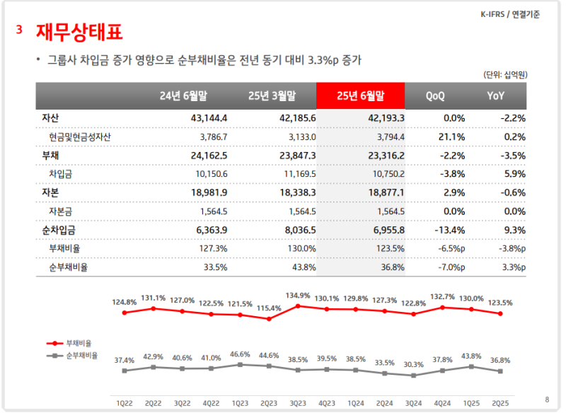 • 순부채비율: 36.8% (YoY +3.3%p)