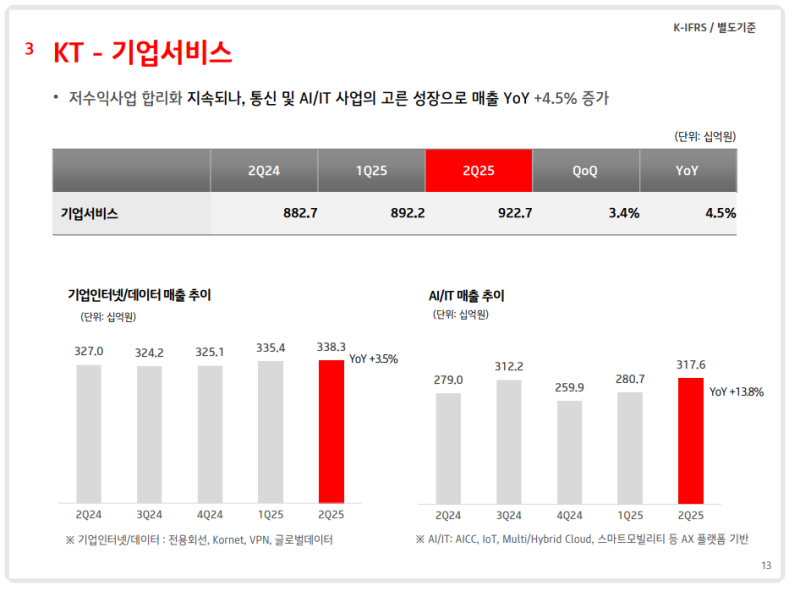 • 기업서비스 수익: 9,227억원 (YoY +4.5%)