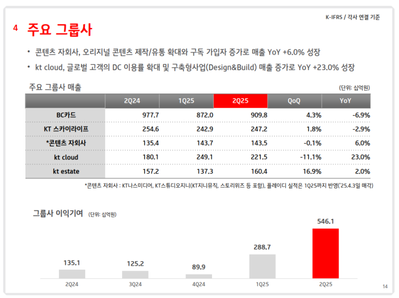• 콘텐츠 자회사 매출: 1,435억원 (YoY +6.0%)