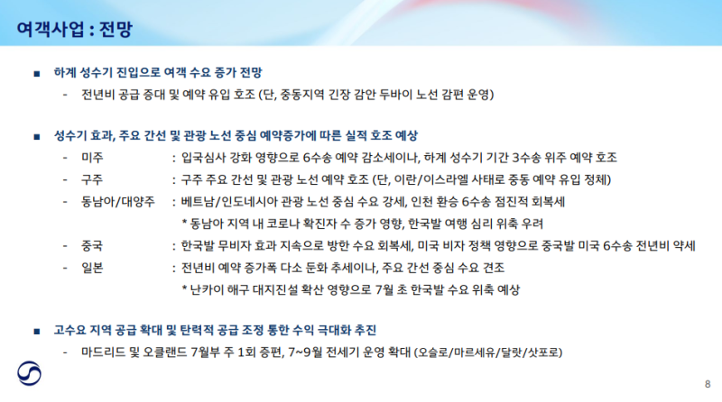 비용 부담 완화, 성수기 수요 견조, 합병 절차는 진행 중이며 일부 노선 운임 제한은 영향 제한적