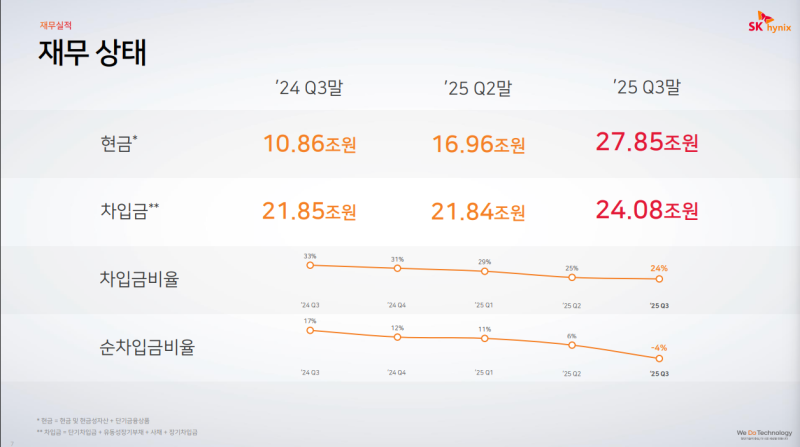 • 2025년 실적이 예상보다 크게 개선되면서 당사의 재무 건전성이 빠르게 강화되는 중이며 3분기에는 매출 증가에 따른 채권 회수 확대 영향으로 순현금을 달성한 상황