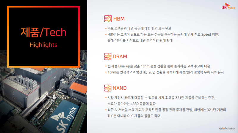 • 4분기에는 HBM과 서버향 디램, 엔터프라이즈 SSD 중심으로 판매 확대 계획