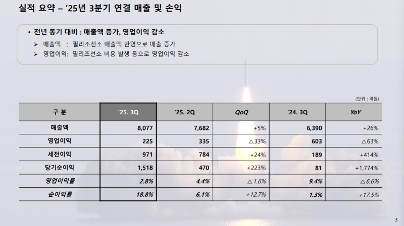 • 필리조선소가 연결 실적에 포함되며 매출과 손실이 발생