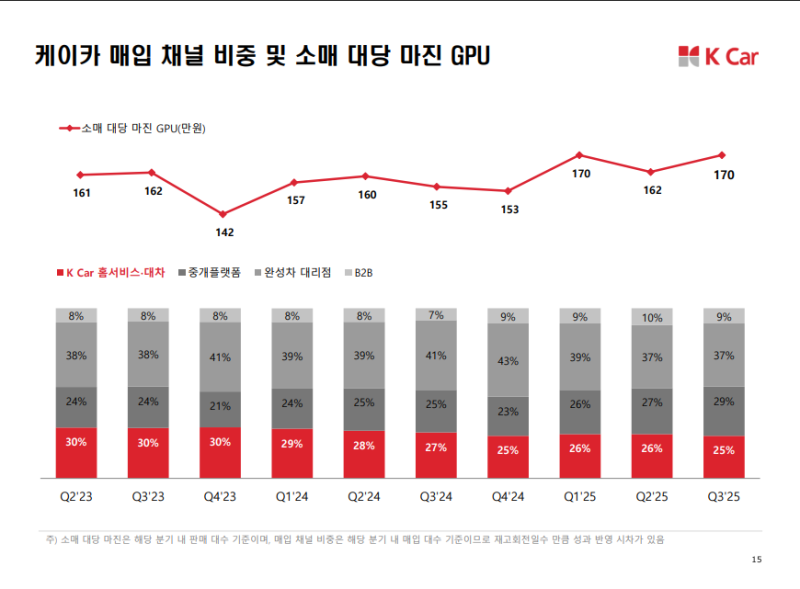 • 홈서비스·대차, 중개 플랫폼, 완성차 대리점, B2B 등 매입 채널 간 균형 유지
