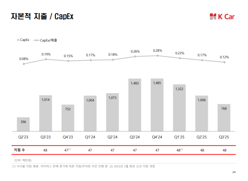 • 3분기 CapEx: 8억 원으로 매출 대비 약 0.1% 수준