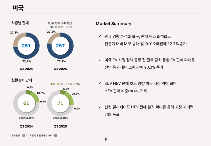 • 북미·유럽·국내 모두 판매 성장세 유지, SUV·하이브리드 중심 믹스 개선 지속