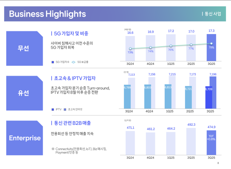 • 전용회선 등 통신 관련 B2B 매출은 안정적 수준 유지