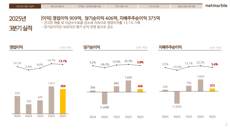 • ‘일곱 개의 대죄: Origin’과 ‘몬길: STAR DIVE’가 2026년 1분기로 출시가 연기되었으나, 기존 게임의 글로벌 확장으로 인해 4분기 실적은 3분기 대비 성장이 예상됨