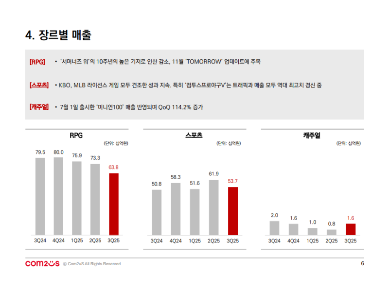 • 4분기 및 2026년에 대한 기대감 유지, ‘서머너즈 워 투모로우’ 업데이트로 반등 기대