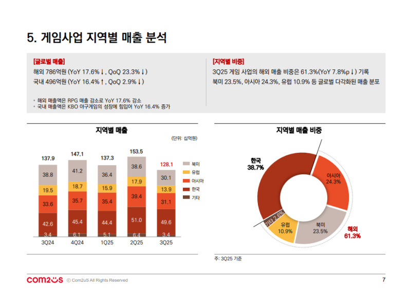 • RPG 매출: 638억 원 (YoY -19.7 %, QoQ -13.0 %)