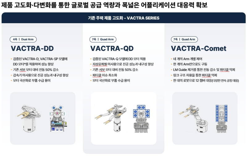 회회사는 기존 주력 사업인 ▲반도체 웨이퍼 이송 로봇 및 자동화 모듈 ▲디스플레이 제조라인용 이송 로봇 ▲제약·바이오 검사자동화 시스템 등을 유지하되, 반도체 분야 이송 로봇 제조 및 판매에 더욱 역량을 집중할 방침이다. 최근 트렌드인 휴머노이드 등 신규 사업 진출보다는 본업의 내실을 다지는 데 주력한다는 전략이다.