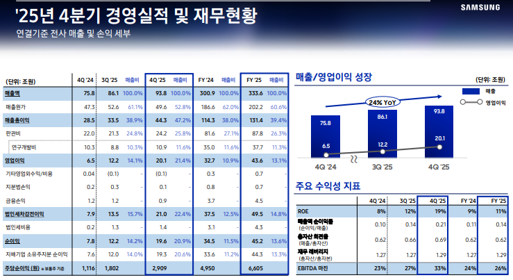 • 4Q25 전사 매출·영업이익 모두 분기 기준 역대 최대 기록