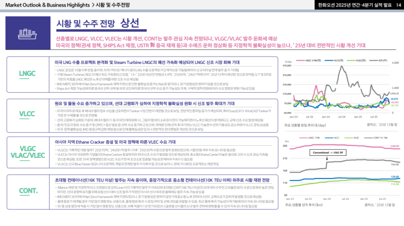 • 카타르 1차 LNGC 물량 소진 이후에도 연간 수익성은 2025년과 유사한 수준 유지 인식