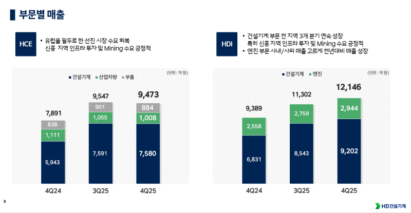 • HCE : 신흥지역 마이닝 및 인프라 수요 지속되며 매출 성장