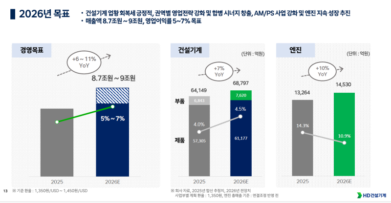 • 건설기계 7%, 엔진 10% 성장 목표(영업이익률 5~7% 목표)