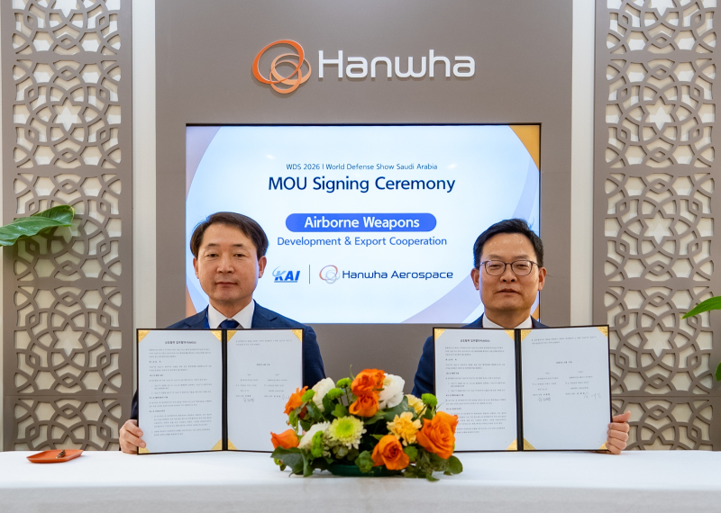 한화에어로스페이스는 9일(현지시간) 사우디아라비아 리야드에서 열린 ‘제3회 세계방산전시회(WDS) 2026’을 계기로 KAI와 항공무장 사업협력 업무협약(MOU)을 체결했다고 10일 밝혔다.