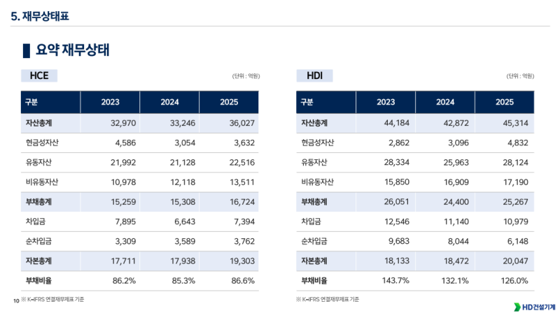 • 2025년 북미 관세 영향: HC 약 -200억 원, HDI 약 -50억 원 반영