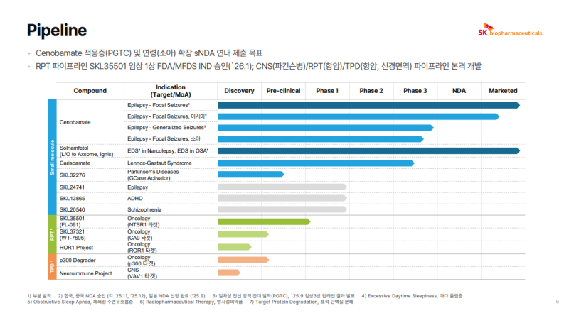 • RPT 모달리티 파이프라인 SKL35501, 2026년 1월 FDA 및 MFDS 임상 1상 IND 승인