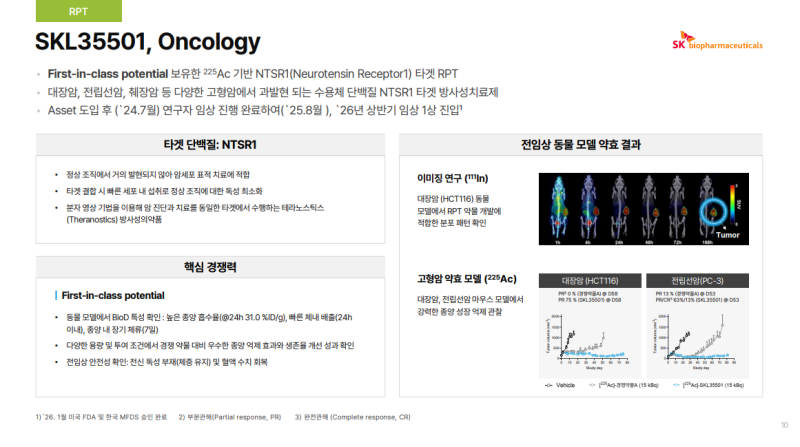 • SKL35501(225Ac-NTSR1) FDA/MFDS IND 승인 확보, RPT 자산 중 최선행 단계
