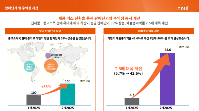• 평균 판매단가 +55%, 매출총이익률 5.7% → 42.6% 개선