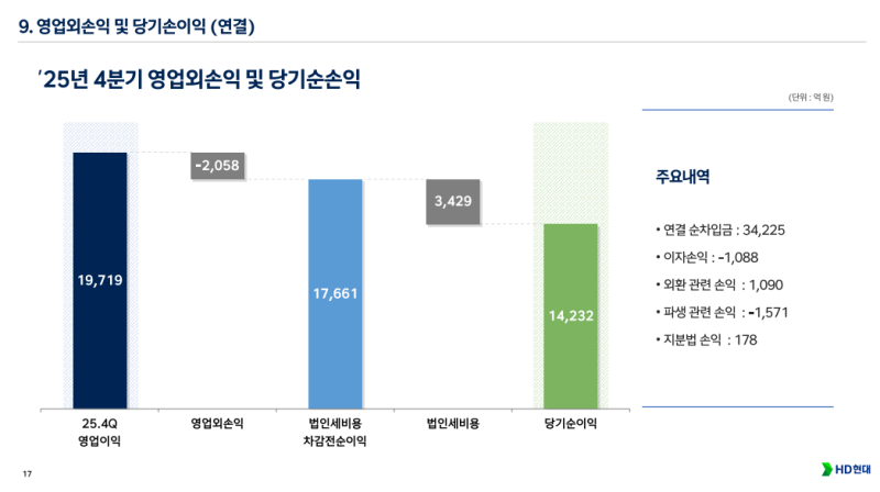 HD현대 영업외손익 및 순이익