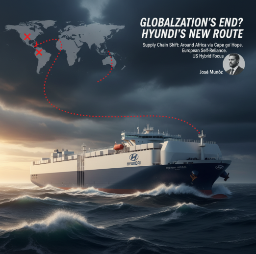 8일(현지시간) 블룸버그 통신과 대담한 호세 무뇨스 현대자동차 대표이사 사장은 이 같은 항로 변경 결정을 전하며, 화물선이 아프리카 희망봉을 경유함에 따라 부품 도착까지 걸리는 시간이 크게 늘었다고 설명했다.